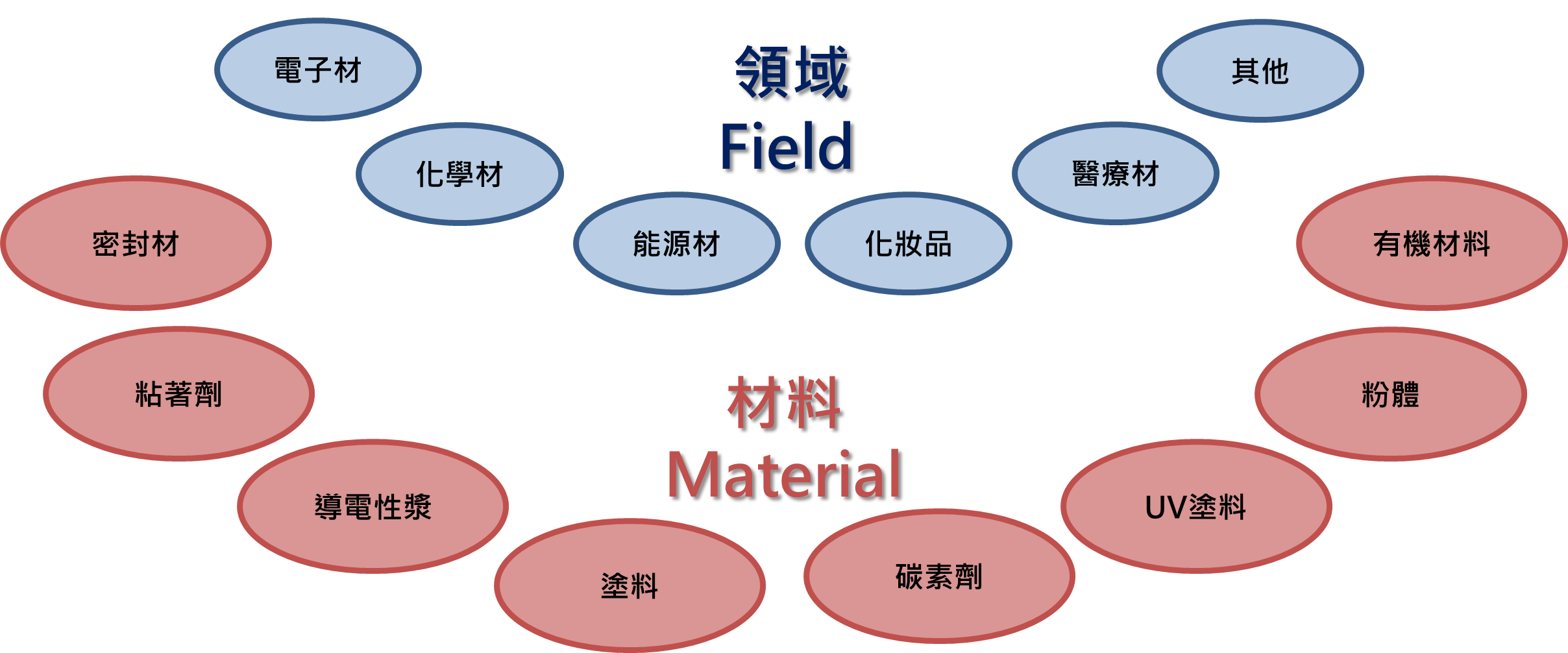 智能手機等IT產品、汽車和家電、生活家電等日常生活中使用的產品,被很多高性能的電子零件所支持。製造這些電子零件必須有稀有金屬等高價的電子材料、磁性材料、功能性材料等。還有太陽能面板、充電電池、燃料電池等先進能源材料也是不可缺少的。另外,健康和美容中不可欠缺的醫療品和化妝品等,各式各樣的高附加價值的材料都被使用。