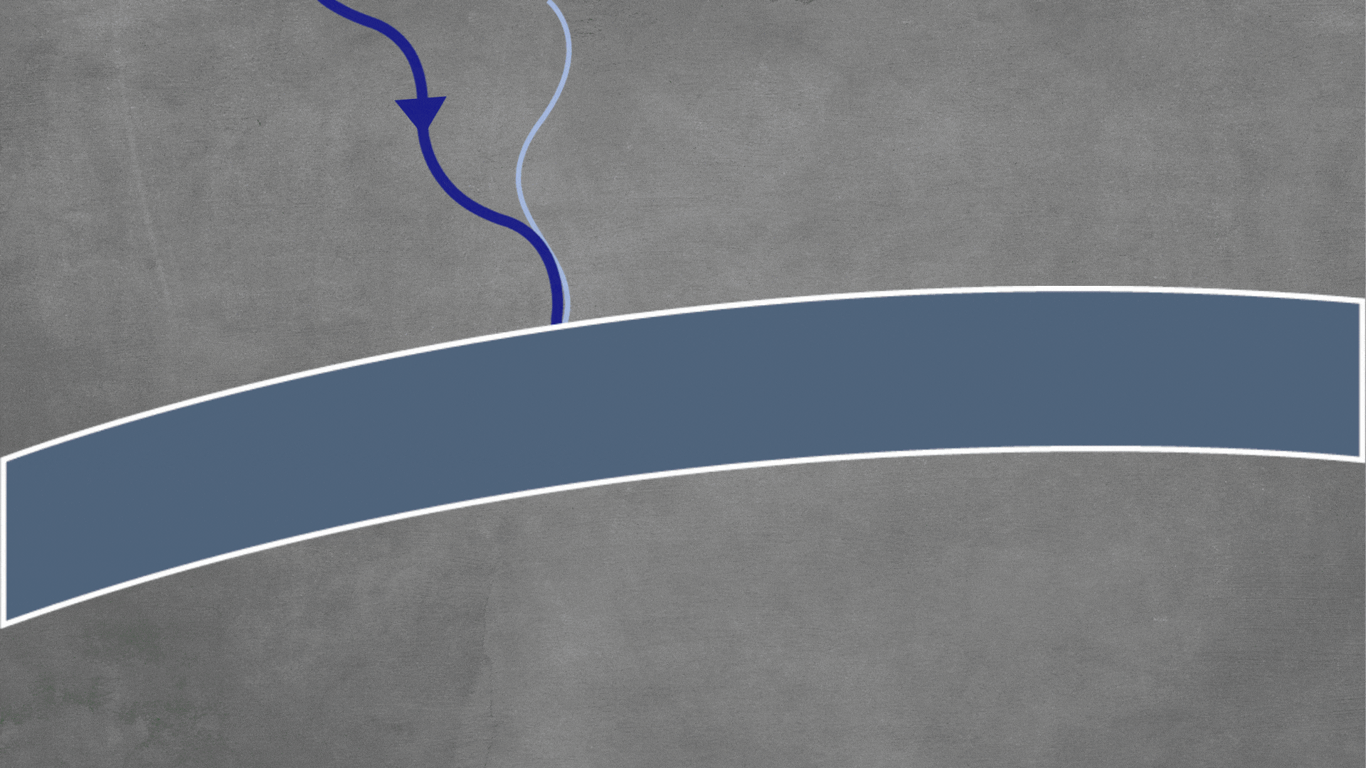 兩個反射光束的相位關係取決於薄膜中光束A的波長與薄膜厚度之間的關係。如果光束A在薄膜中傳播的總距離是薄膜中光束波長的整數倍,則兩個反射光束同相合併產生建設性相干涉(如上圖所示),光束的波長振幅變大,能量增強。如果光束A行進的距離是薄膜中光的一半波長的奇數倍,則光束會產生破壞性干涉(如下圖所示),則光束的波長振幅變小,能量減弱。